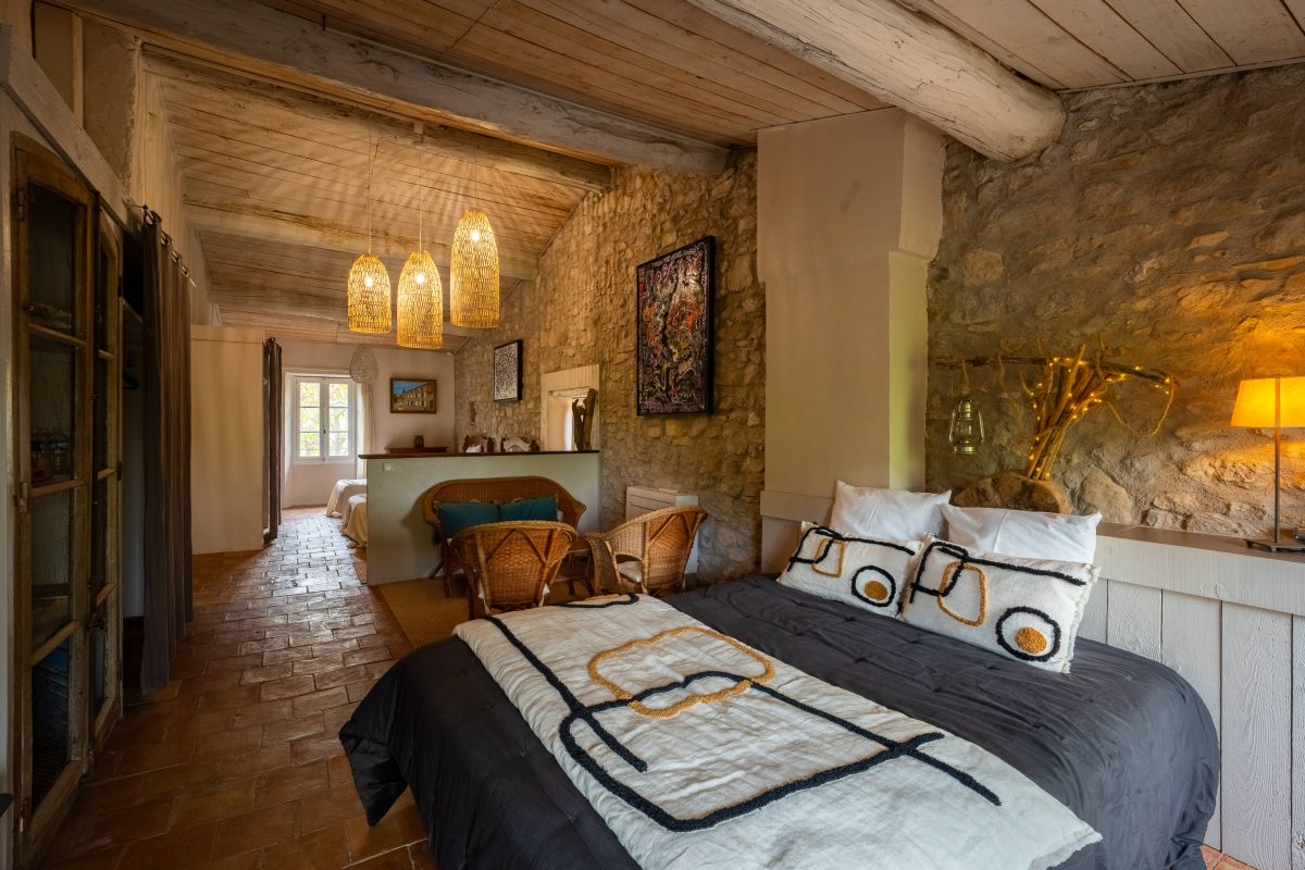 Suite que combina piedra expuesta y arte abstracto en referencia a las ruinas de este castillo.